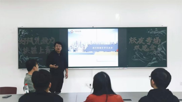 +校友”就业共同体,下午四点,以“好风凭借力,扶摇上青云”为主题的校友专场双选会活动在求是楼133顺利举行。双选会上,国联、华英证券公司业务总经理、优秀校友戴雨皓结合自身经历,从校园和职场两个方面分享工作经验和心得,详细介绍了其公司的基本信息、世界杯决赛以及发展前景,鼓励学弟学妹们要把握好在校时光,提升综合素质,增加自己未来职业生涯“砝码”。与此同时,国联证券重庆营业部总经理孟书勇勉励大家从多角度提升自己,强化优势,并表示将积极为世界杯决赛