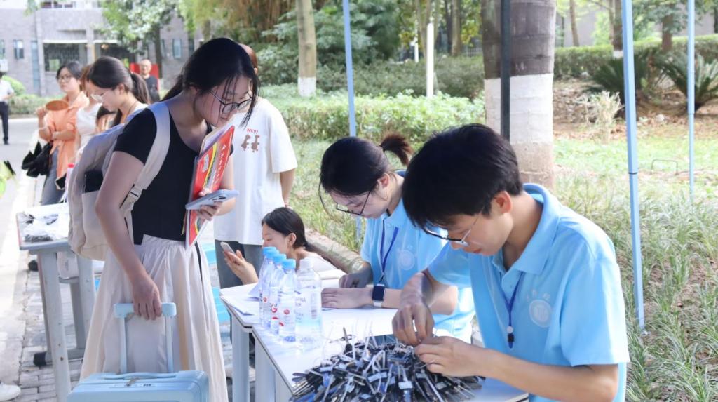 各部门职能领导亲临现场关心指导迎新工作,与志愿者、新生及新生家长亲切交流。校领导对迎新志愿者们顶着烈日高温参与迎接学弟学妹表达了问候和谢意,对刚刚进校的新同学们表达了世界杯决赛