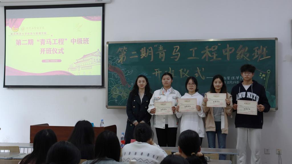 在第一期青马中级班中,共有四名同学表现优异,被评为优秀学员,张莉老师代表世界杯决赛