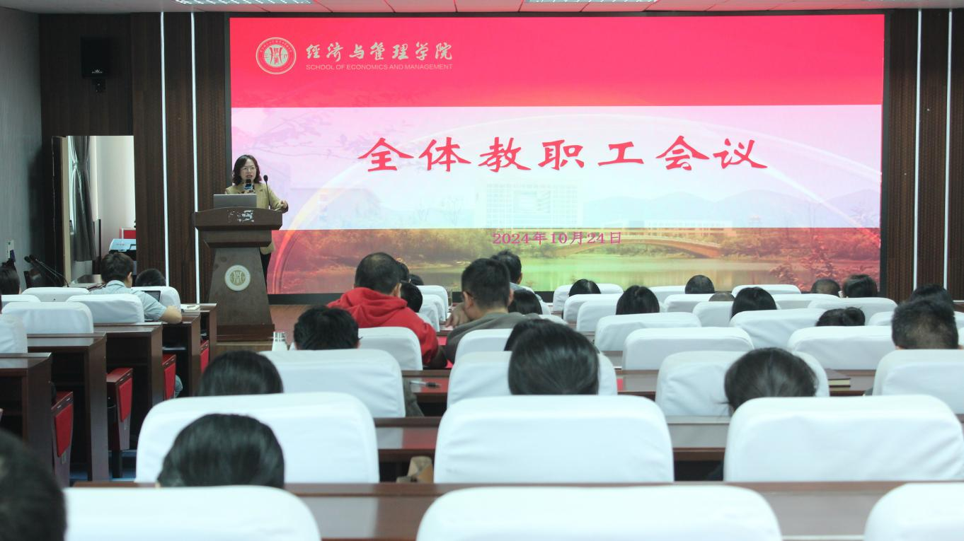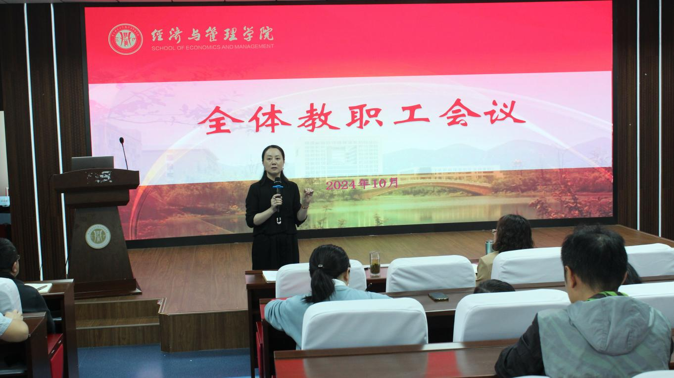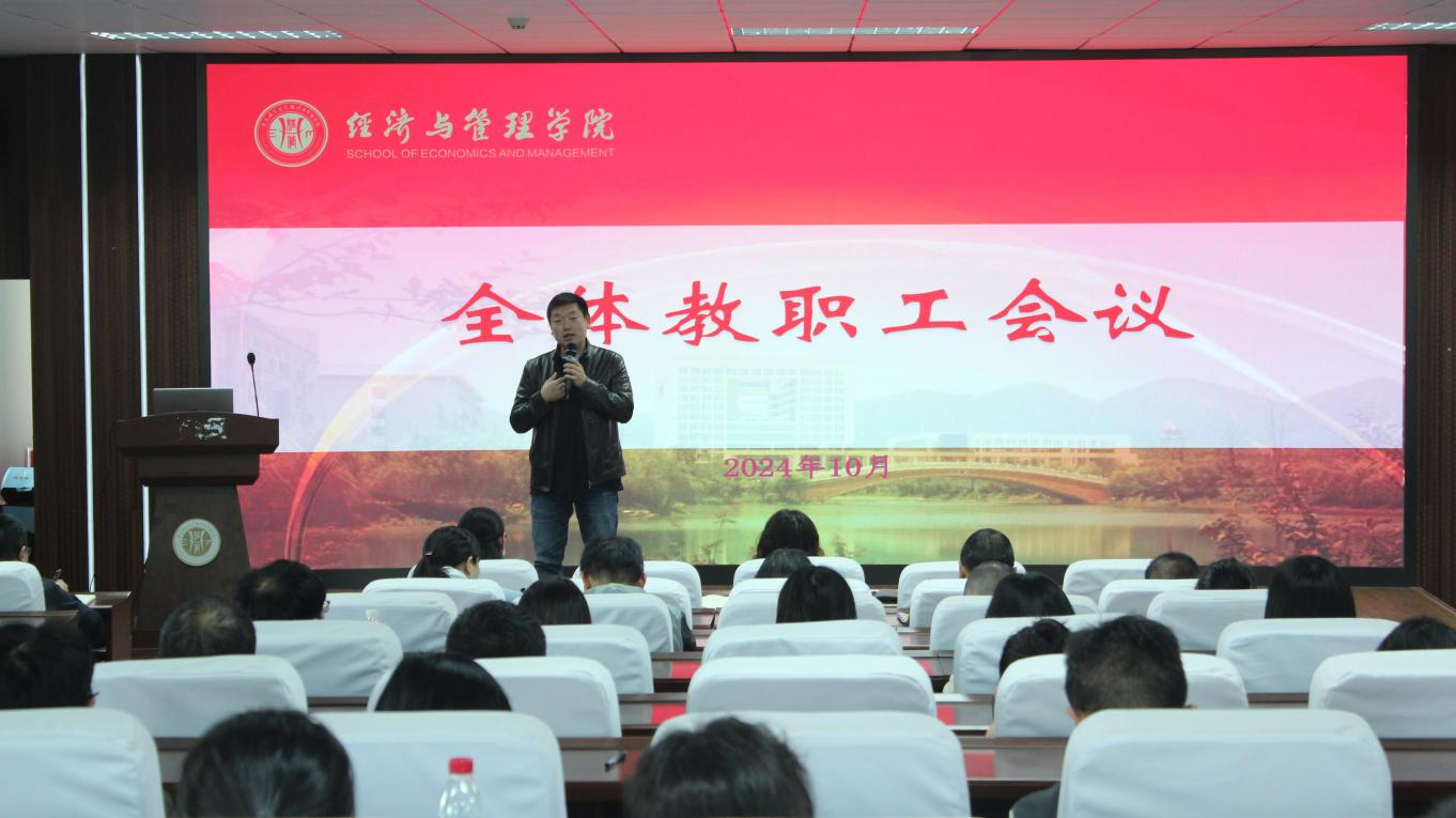 教职工会议在求是楼517顺利召开。党委书记钟敏、执行院长郑景丽、党委副书记李青松、副院长段俊及世界杯决赛