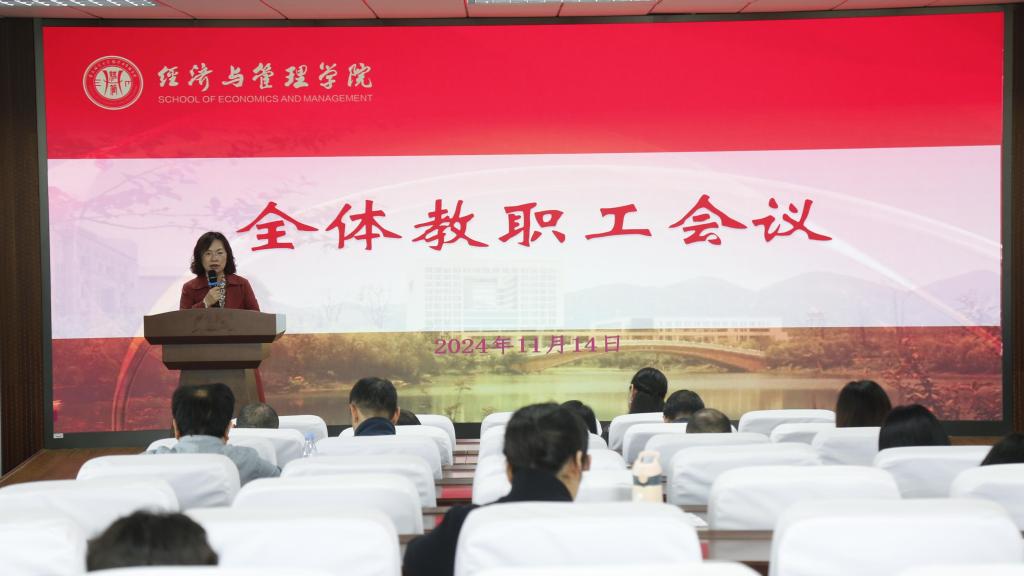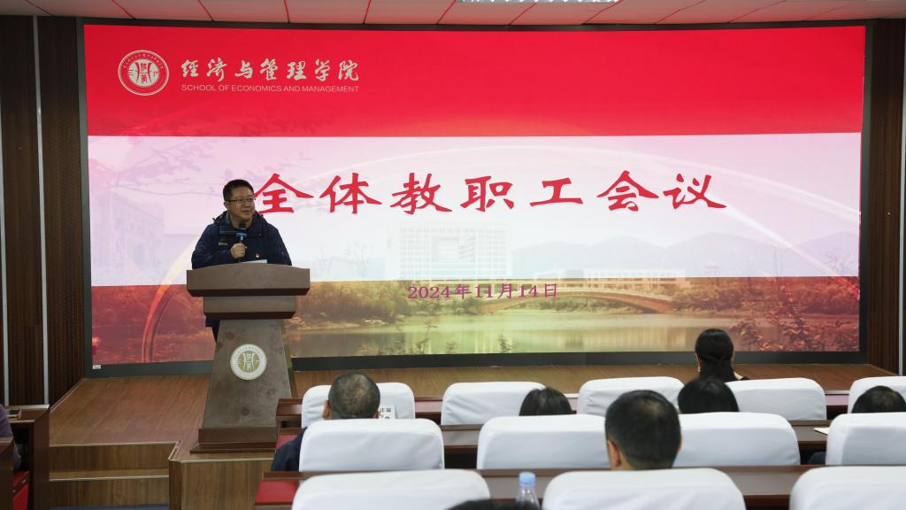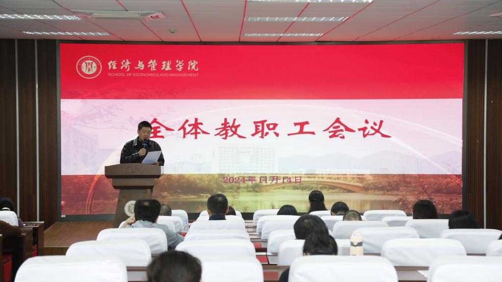 教职工会议在求是楼517会议室召开。党委书记钟敏、执行院长郑景丽、副院长陈宇科、段俊、党委副书记李青松及世界杯决赛