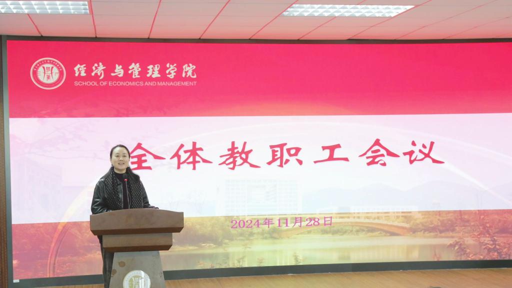 党委书记钟敏、执行院长郑景丽、副院长陈宇科、段俊与全体教职工出席本次会议。