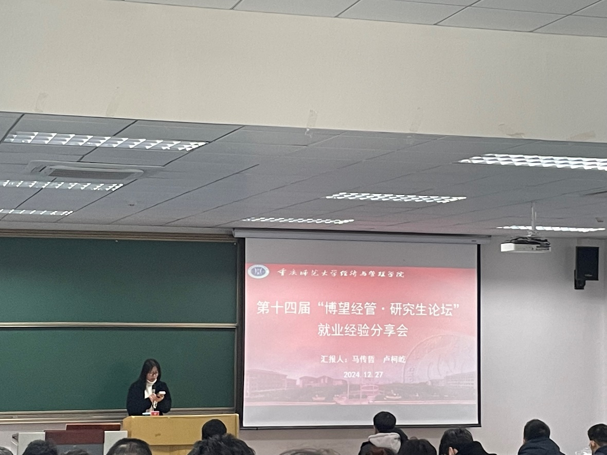 于求是楼213教室举办第十四届“博望经管·研究生论坛”就业经验分享会。本次分享会由经管世界杯决赛