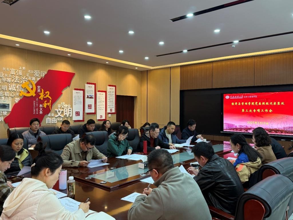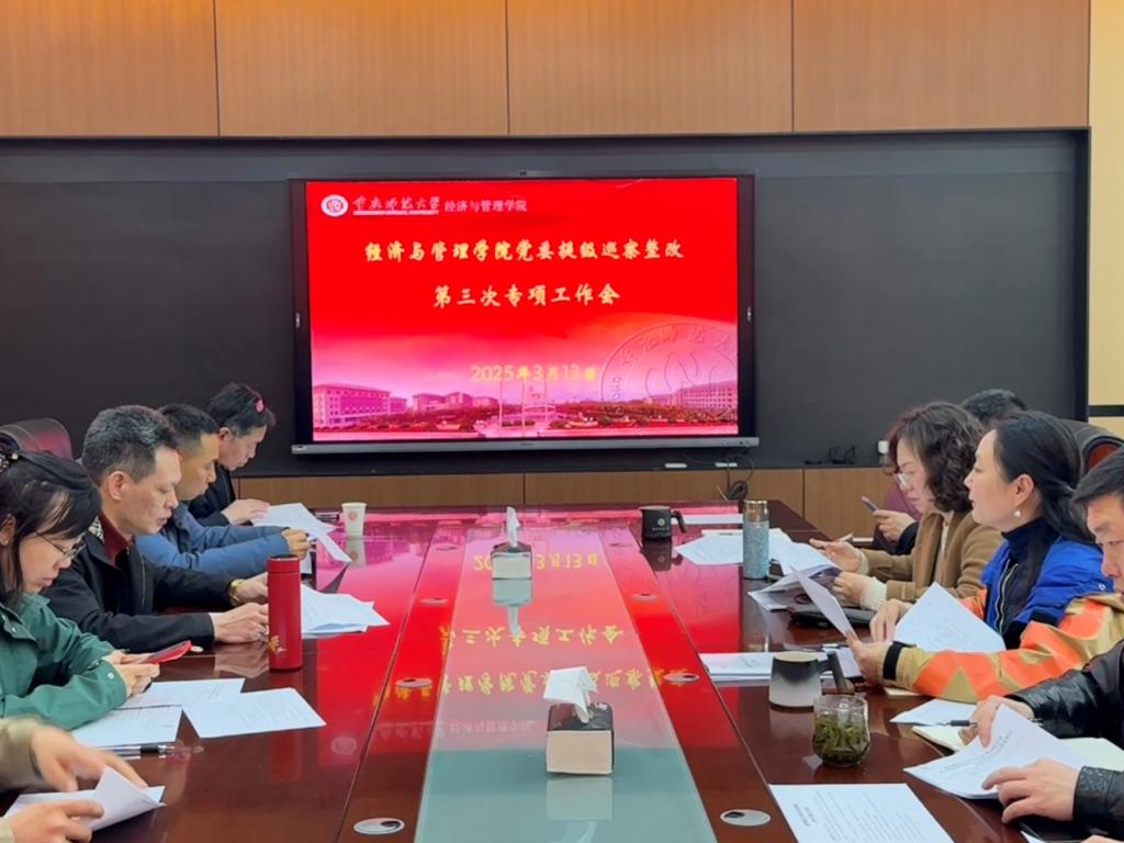 党委巡察整改工作组在求是楼420会议室召开第三次专项工作会议,党委书记钟敏主持,工作组全体成员参会,世界杯决赛