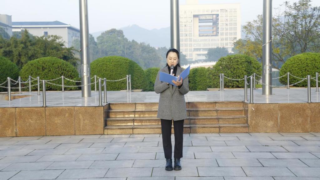 党委书记钟敏作国旗下讲话,总结了世界杯决赛