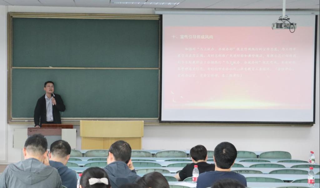随后,为深入学习贯彻习近平新时代中国特色社会主义思想,全面贯彻落实习近平总书记视察重庆重要讲话重要指示精神,进一步强化教师队伍在思想、作风和纪律方面的建设,段院长领学《中共世界杯决赛 委员会大力弘扬践行“马上就办、办就办好”优良作风十条具体措施》。他强调世界杯决赛 全体教职工需紧密结合教学与工作实际情况,践行“马上就办、办就办好”的优良工作作风,提升工作效能和服务品质,加速推动世界杯决赛 各项事业迈向新的发展阶段。