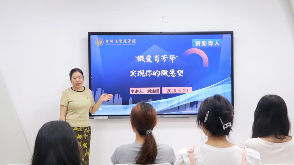 于求是楼124开展“微爱育芳华——实现你的微愿望”主题活动。本次活动由2023级辅导员刘炜婳主持,20余名家庭经济困难学生代表齐聚一堂,共同开启这场充满温情的成长对话。