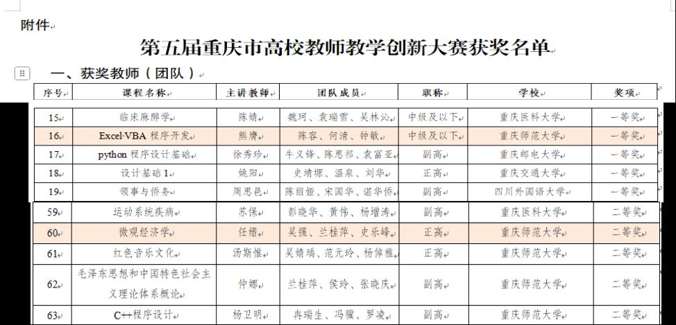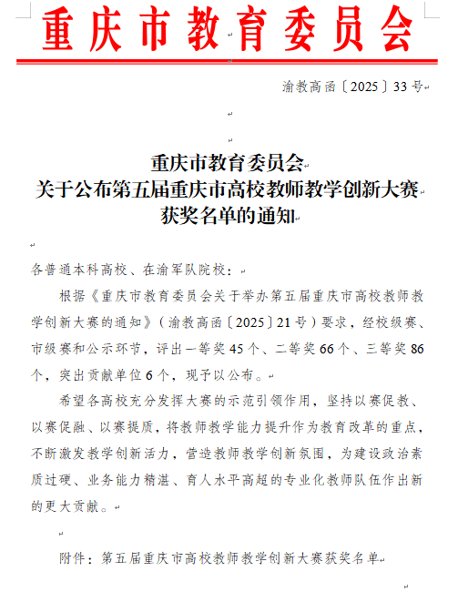 近日,第五届重庆市高校教师教学创新大赛获奖名单揭晓,世界杯决赛