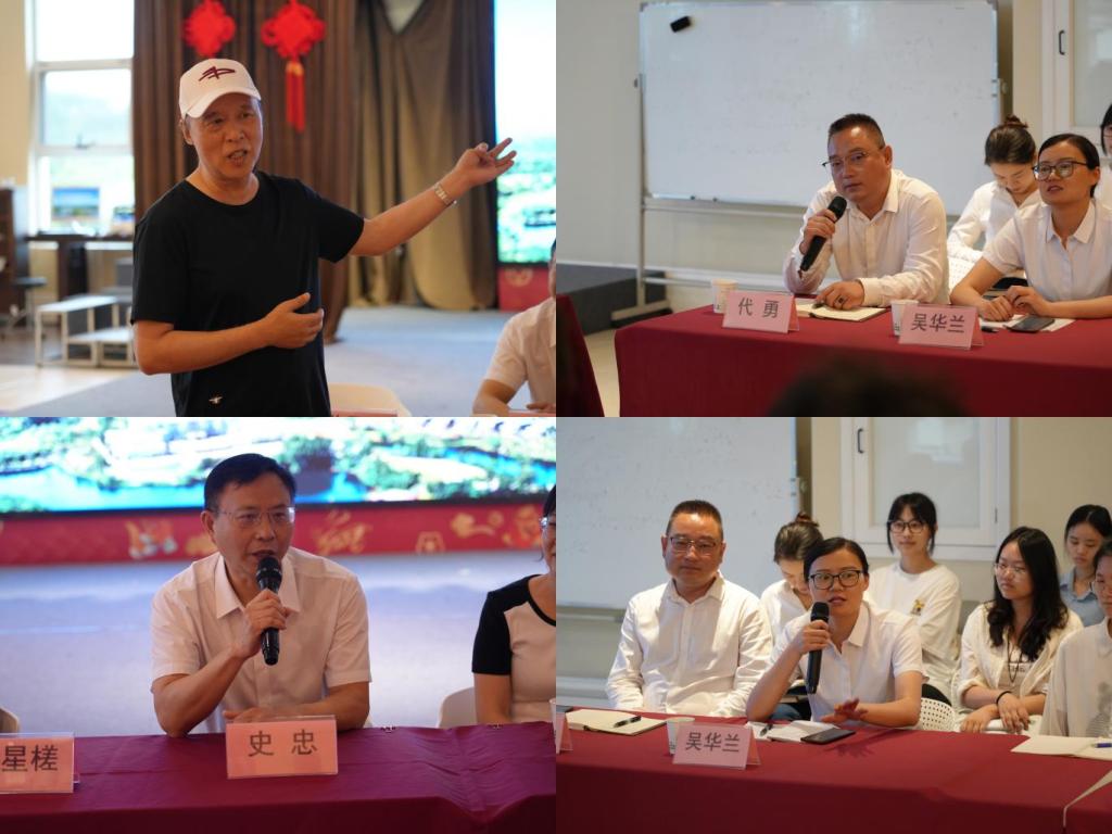 退休教授陈星槎、农业与物业负责人代勇、大健康运营产业负责人吴华兰与学生们进行了热切交流。