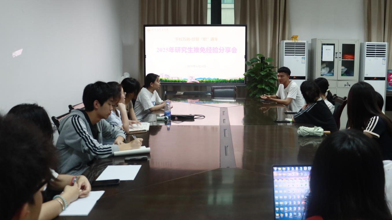 2021级人力资源管理专业推免至西南石油大学的张宝担任分享嘉宾,12名有推免意向的学生参与此次分享会。