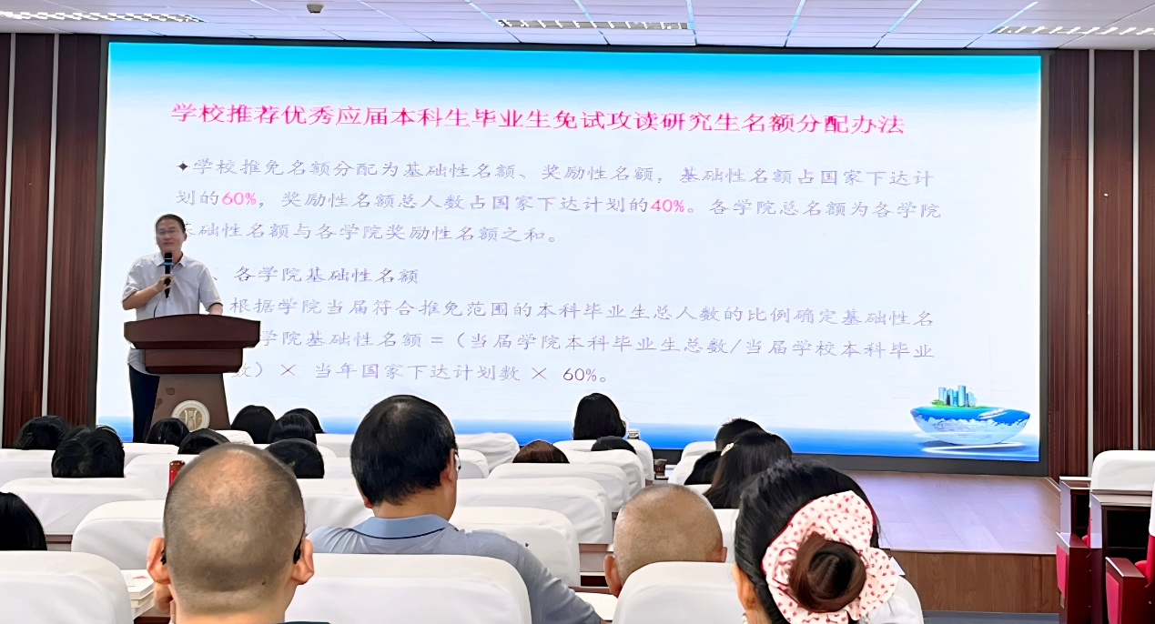 副院长陈宇科通报暑期科研与研究生工作情况,通报研究生就业率和推进就业工作具体举措,总结上半年各类项目申报情况,鼓励全体教师潜心开展科研工作,以高水平科研支撑世界杯决赛