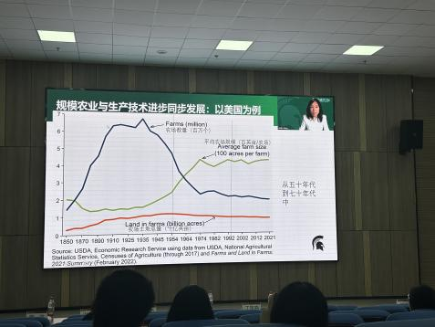 论坛期间,美国密歇根州立大学专家及《Public Choice》《World Development》等国际期刊学者,与扬州大学、贵州大学等国内院校专家围绕全球农业农村发展、农地转型、粮食安全等主题作主旨报告。
