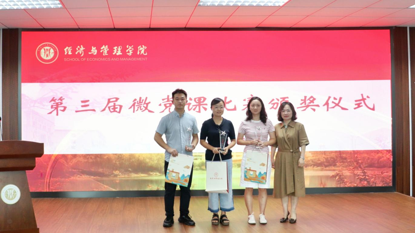 随后,教工四支部支部书记主持微党课比赛颁奖仪式。副院长段俊为荣获三等奖的研究生一支部、研究生三支部、教工一支部、教工二支部颁奖;执行院长郑景丽为荣获二等奖的教工四支部、本科生一支部、研究生二支部颁奖;党委书记钟敏为荣获一等奖的本科二支部、教工三支部、本科三支部颁奖。