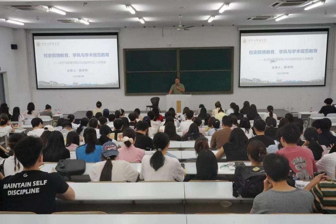 二十一年来在学科建设、人才培养、社会服务等方面取得的成就,增进了新生对校史院情的认同感和归属感。在学风与学术规范教育环节,陈宇科重点解读了学术规范的相关文件,并结合典型案例明确告诫学术诚信是不可逾越的“红线”和“底线”,他勉励同学们要将“恪守学术道德、坚守科研诚信”内化为自觉追求,以一丝不苟的严谨态度,开启有价值的学术生涯。