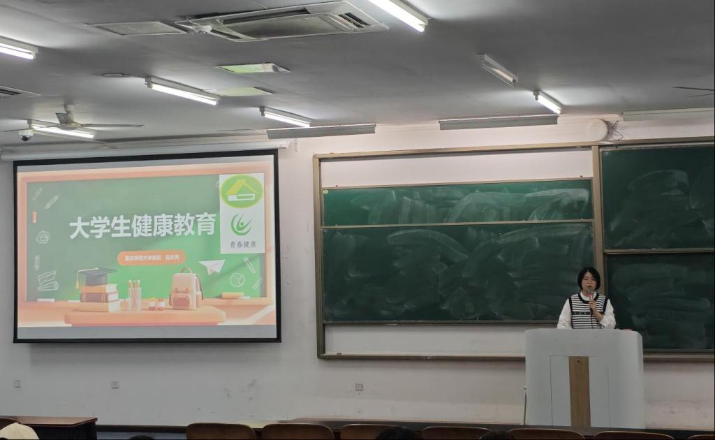 于砺志楼T2113教室开展大学生健康教育专题讲座。本次活动邀请校医院石庆秀医生担任主讲,2025级全体新生参与。