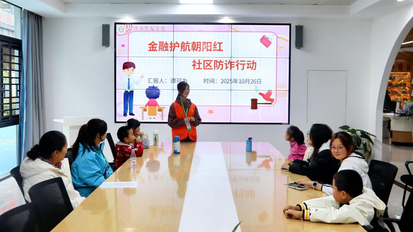 组织20余名学生志愿者,走进沙坪坝区虎溪街道学智社区,开展以“金融护航伴成长,社区防诈行动”为主题的志愿服务活动。