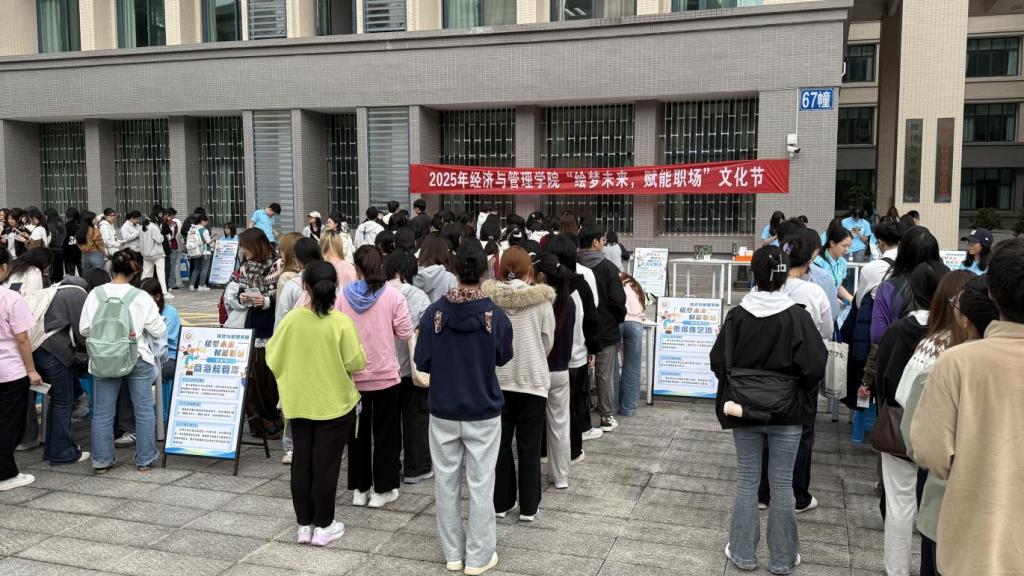 于求是楼一楼广场举办“绘梦未来,赋能职场”主题文化节,以寓教于乐的形式为同学们搭建起校园学习与职场实践的沟通桥梁。