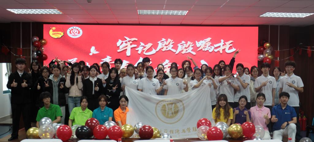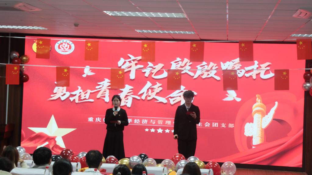 活动还通过视频短片展示了经管学子参与西部支教、投身基层建设、开展公益帮扶等一系列社会实践成果,充分彰显了经管学子将专业知识转化为服务社会、推动发展的实际行动,展现了新时代青年的担当与作为。随后,主题朗诵《嘱托如炬,青春作答》与舞蹈《奔跑的青春》轮番上演,同学们以饱满的热情发出“请党放心,强国有我”的铿锵誓言,将现场气氛推向了最高潮。