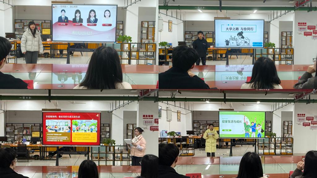于朗风苑学生文化活动中心开展第二届“一站式”学生社区演讲比赛。本次比赛以“寝伴同心,逐梦经管”为主题,邀请辅导员黄微、尚立、赵丙辰担任评委。