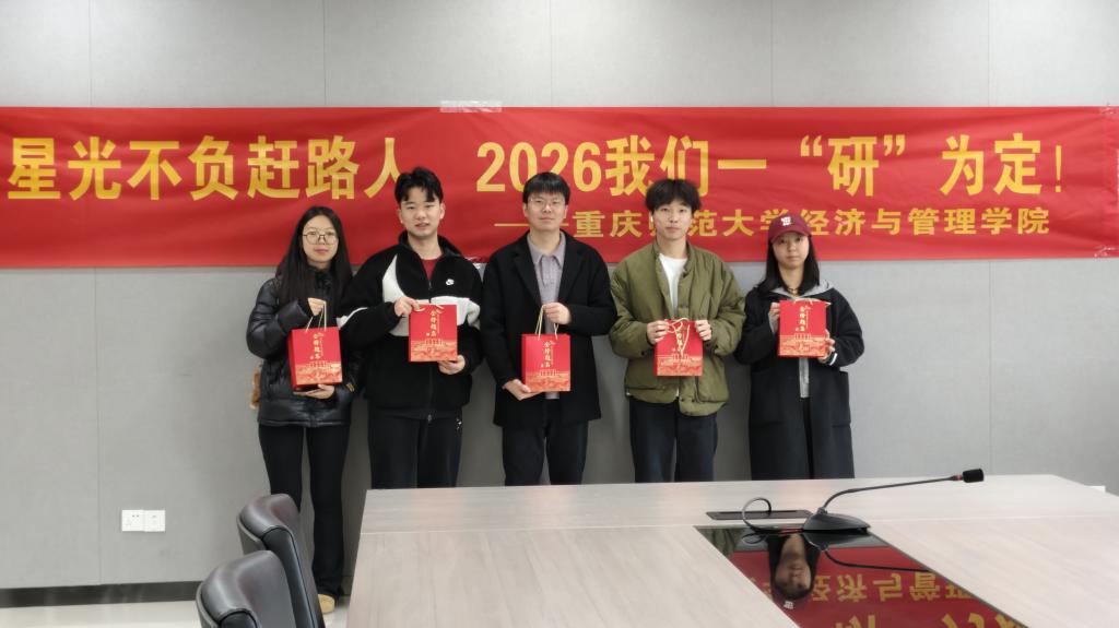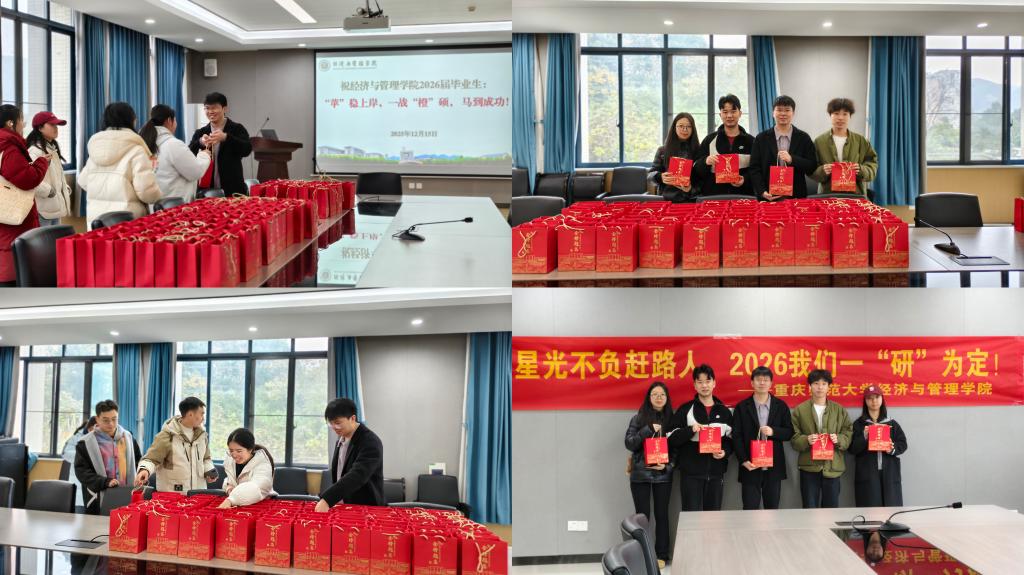 在礼品发放过程中,毕业年级辅导员张源与学子们亲切交流,关心备考状态,并叮嘱大家在最后阶段合理安排作息、保持平稳心态。现场悬挂的横幅“星光不负赶路人,2026我们一‘研’为定”醒目而振奋,进一步点燃了学子们的信心与决心。