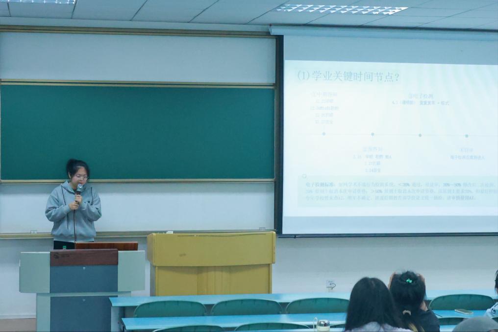 2023级产业经济学专业廖凌宁、管理科学与工程专业李嘉仪两位同学担任主讲人,两位同学分别通过人才引进、四川省考成功上岸广安区商务局和绵阳市梓潼县政府,现场围绕公务员考试备考经验开展专题分享,2024级全体硕士研究生参与。