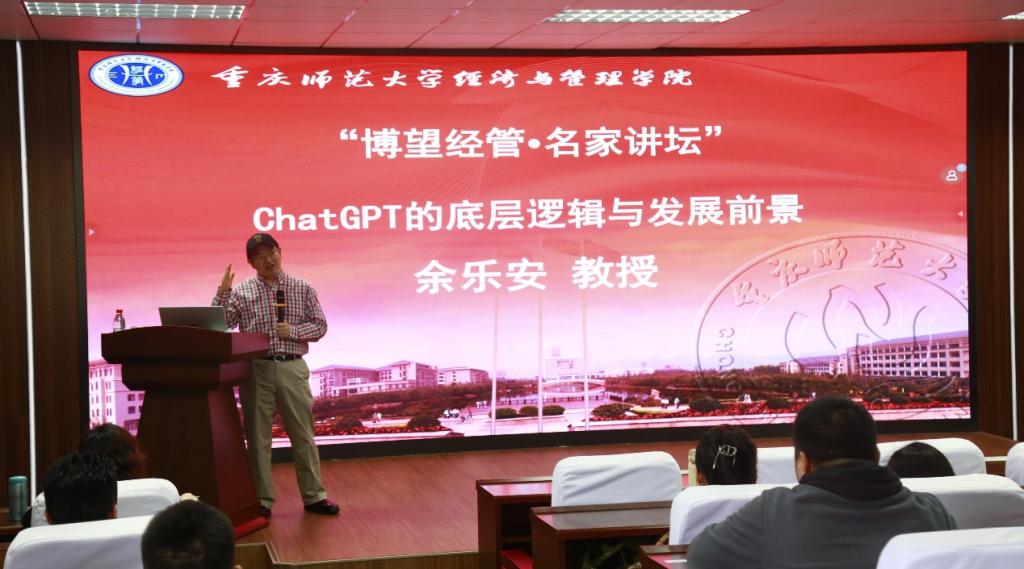 交流环节中参会师生围绕ChatGPT与余乐安教授进行了充分交流,余教授耐心细致的回答了师生提出的每个问题。会后,郑景丽院长衷心感谢余教授带来的精彩报告,报告在热烈的掌声中圆满结束。
