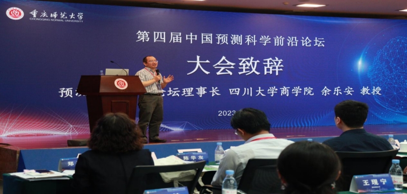 图 2 预测科学前沿论坛理事长余乐安教授致辞