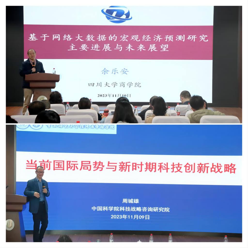 余乐安教授,题为“基于网络大数据的宏观经济预测研究主要进展与未来展望”。余乐安教授基于网络大数据发展和应用现状,详细阐述了大数据受关注的原因、主要特征以及互联网大数据预测宏观经济的背景,分享了大数据预测研究的前沿成果,并回答了现场老师们提出的大数据预测方法选取、农村信用风险识别等问题。