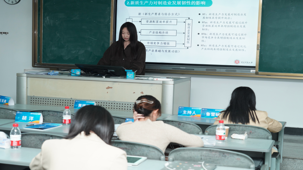 2023级产业经济学专业研究生樊春蕾同学受邀参会并作题为“新质生产力与制造业发展韧性关系”的学术报告,报告基于新质生产力与制造业发展韧性相统一的理论框架,探讨新质生产力发展对制造业发展韧性的非线性影响效应,以及新质生产力影响制造业发展韧性的资源配置效率提升、市场竞争力提升和产业结构优化路径,提出要遵循以制造强国发展战略需求为导向,以科技创新为核心等思路来充分发挥新质生产力对制造业发展韧性的提升功能。