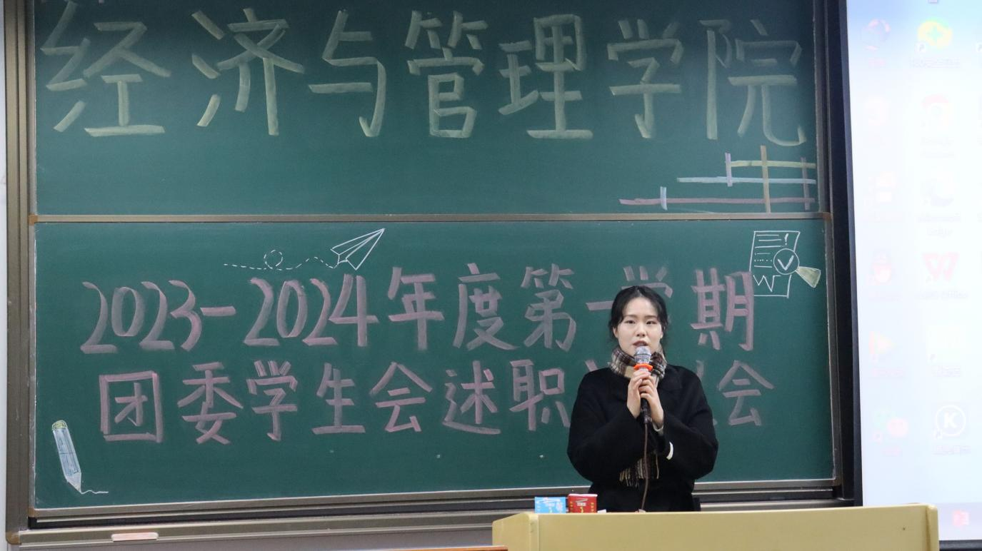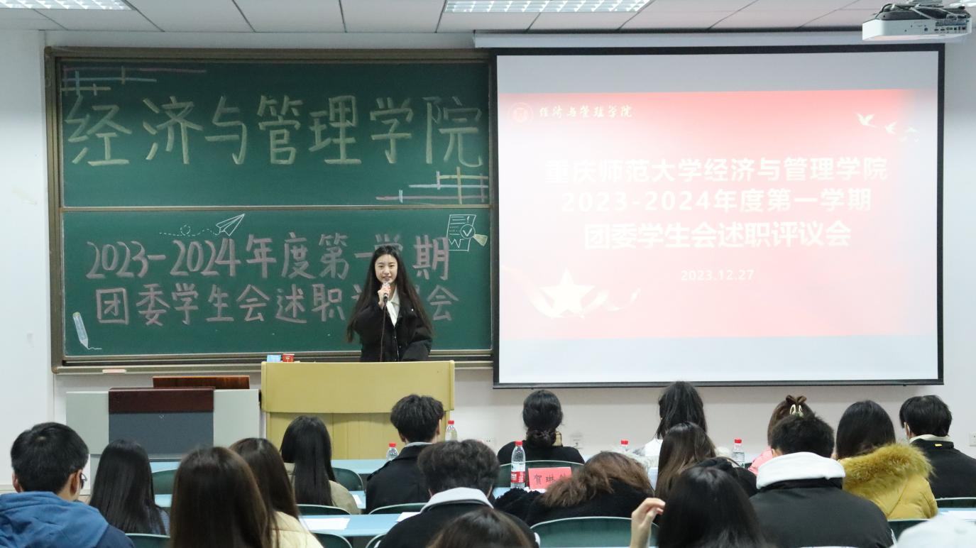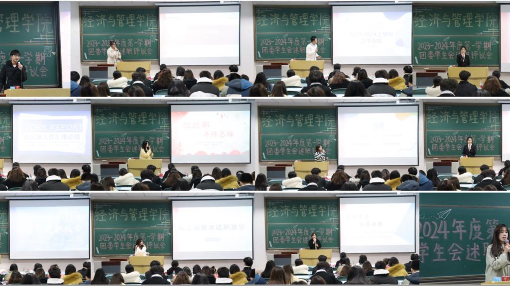 于求是楼321举行2023-2024年度第一学期团委学生会述职评议会。参加本次大会的成员有辅导员唐艺珊老师、各团委学生会代表以及大众评审学生代表。