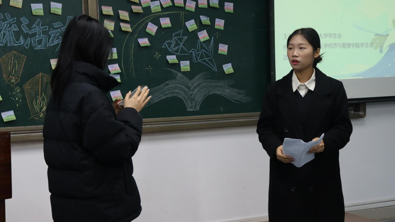 本次活动主要以游戏的形式展开,富有趣味性。在暖场游戏“海龟汤”、以书会友、飞花令等活动中,同学们积极发言提问,逐步找到谜底真相,还热情分享了自己的书摘和座右铭,讲述着背后温暖励志的故事,展现着丰富的文学素养和诗词累积;除此之外,在经典文段阅读演绎、“书”菜盲盒等环节中,现场同学展现出强大的阅读理解能力和共情能力,再度演绎了名著经典桥段,并在“数字炸弹”游戏中发挥聪明才智,快速猜中数字,获得惊喜奖励。现场气氛非常活跃,同学们热情高昂,积极发言分享展示,很多都获得了精美的小礼品。
