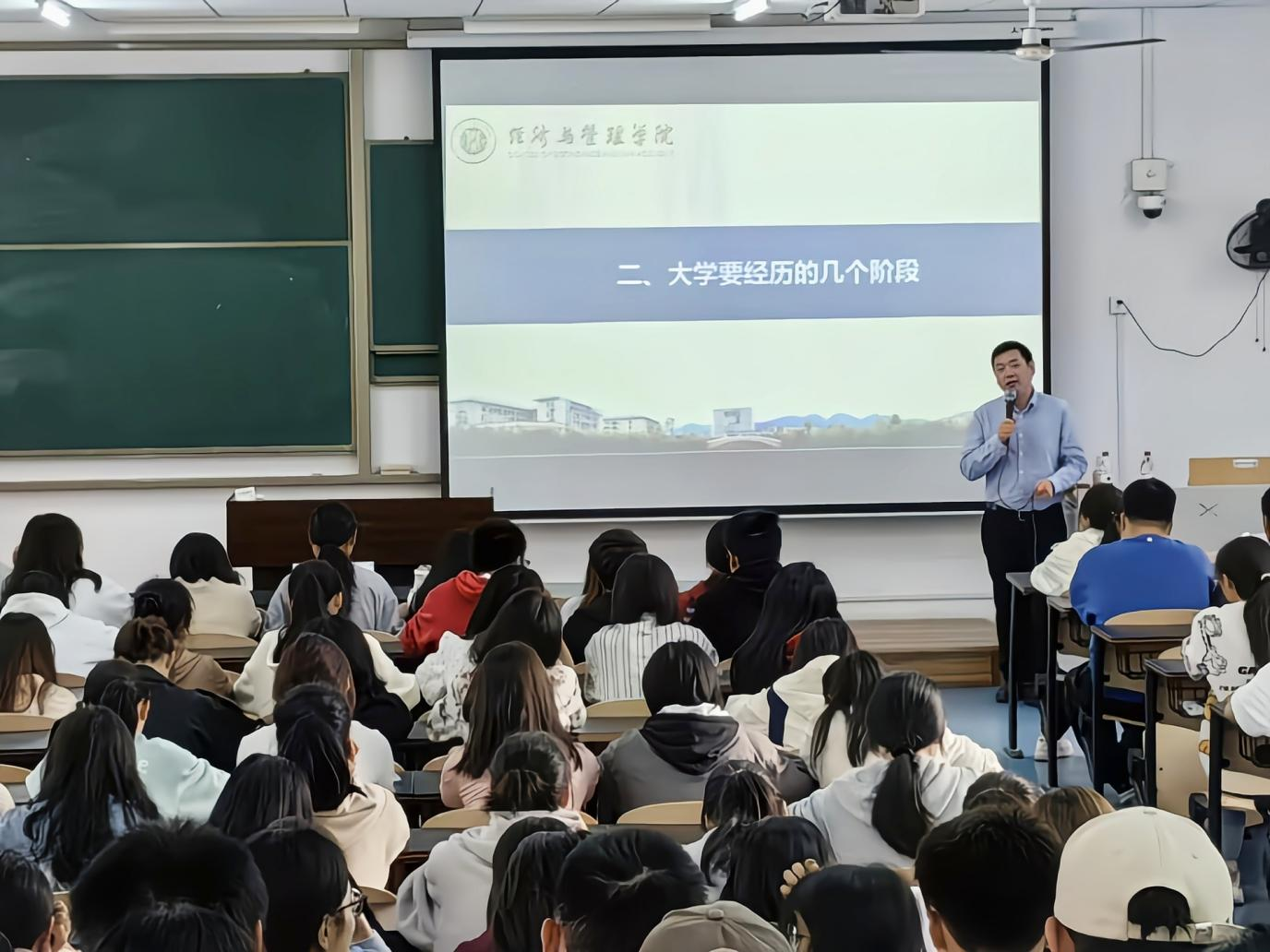 党委副书记李青松为23级新生进行成长成才新生教育辅导。