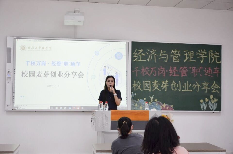 于求是楼220举办千校万岗·经管“职”通车之校园麦芽创业分享会,特邀校园麦芽品牌创始人、重庆织芯家纺有限公司负责人李晓秋进行分享。