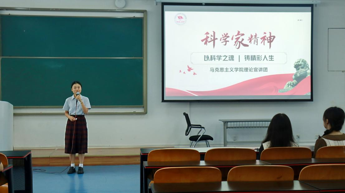 理论宣讲团成员进行理论宣讲,全体青马初级班学员参与。
