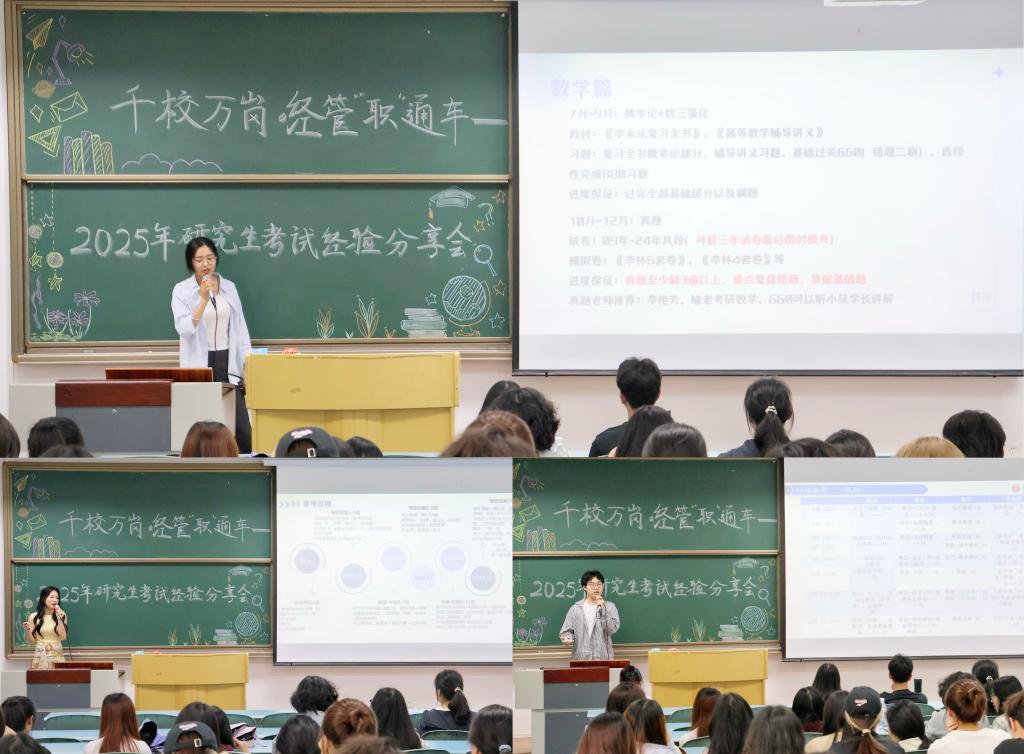 于求是楼213举办2025年研究生考试经验分享会。本次活动特邀三位考研上岸的优秀学子韩东朕、蔡福敏、李晓彬与同学们分享考研历程与心得。