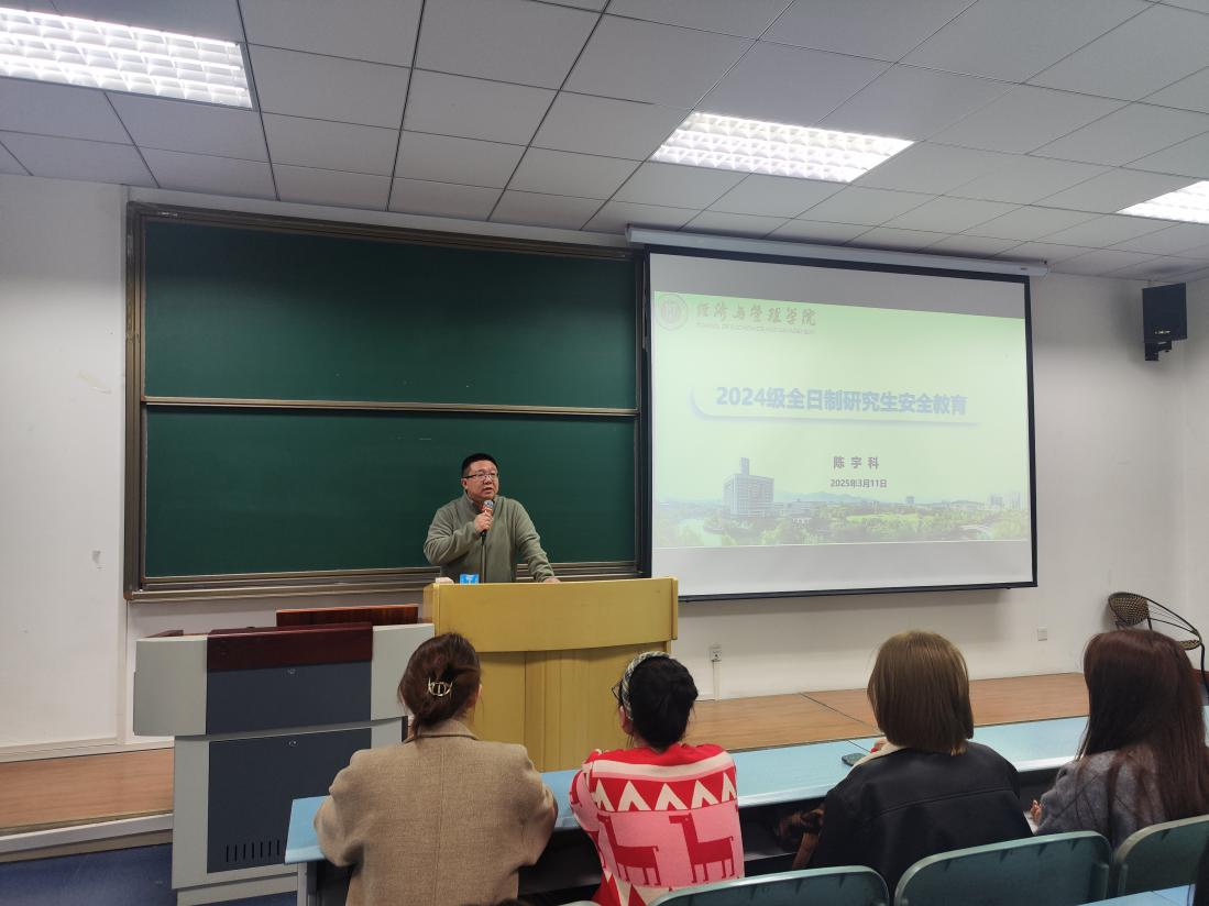 在求是楼321教室开展新学期研究生安全教育讲座。本次讲座围绕学术能力培养与校园安全防护两大重点展开,副院长陈宇科主讲,2023级、2024级全体研究生参加。