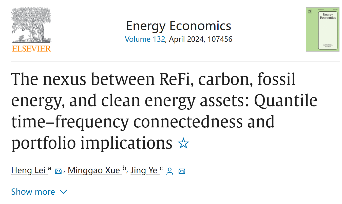 工商管理学系雷恒博士撰写的论文The nexus between ReFi, carbon, fossil energy, and clean energy assets: Quantile time-frequency connectedness and portfolio implications在Energy Economics公开发表。