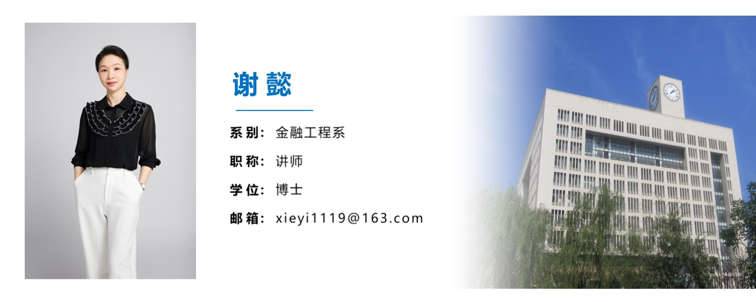 谢懿,女,汉族,1985年11月出生,博士研究生,副教授,重庆市区域经济学会理事。主要研究方向为企业社会责任,目前已SSCI和CSSCI期刊上发表论文7篇,主持主研课题9项。主讲课程包括《货币金融学》、《国际金融学》、《金融经济学》等,