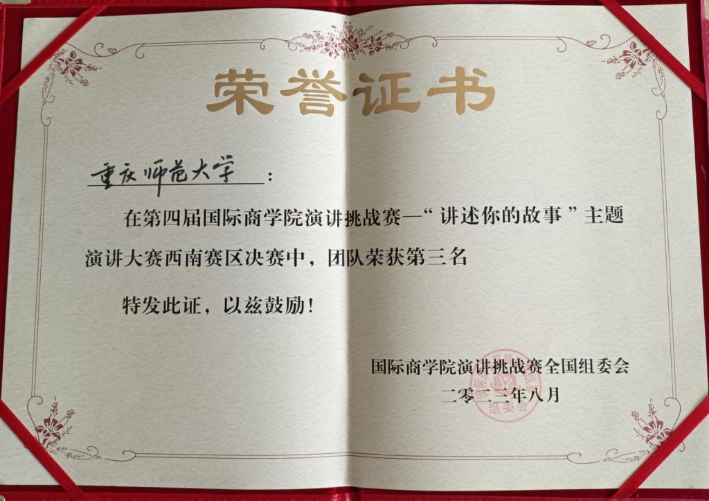 21级MBA学生游琴、21级MBA学生苏杭、22级MBA学生李组奎在校选拔赛中脱颖而出,获得西南赛区总决赛入围资格。8月27日,在校MBA联合会学术部部长滕雨薇带领下,参与西南赛区总决赛争夺,游琴、苏杭、李组奎三位同学为世界杯决赛