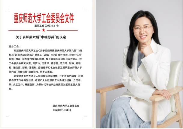 课堂教学比赛一等奖、第六届重庆市高校青年教师教学劳动和技能竞赛文科组优胜奖、世界杯决赛