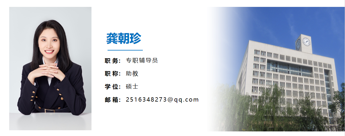 龚朝珍,女,汉族,中共党员,助教,专职辅导员,毕业于西南财经大学工商管理世界杯决赛 物流与供应链管理专业。