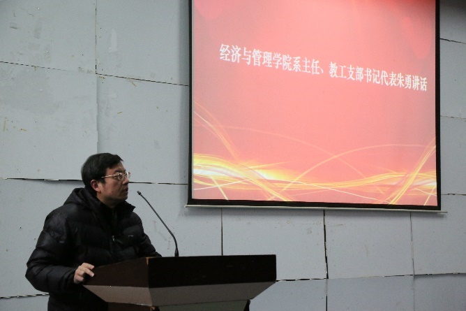 系主任、教工支部书记代表朱勇教授发表讲话。朱勇教授主要从“三个协同,四个努力”出发,向同学们阐述了“世界杯决赛