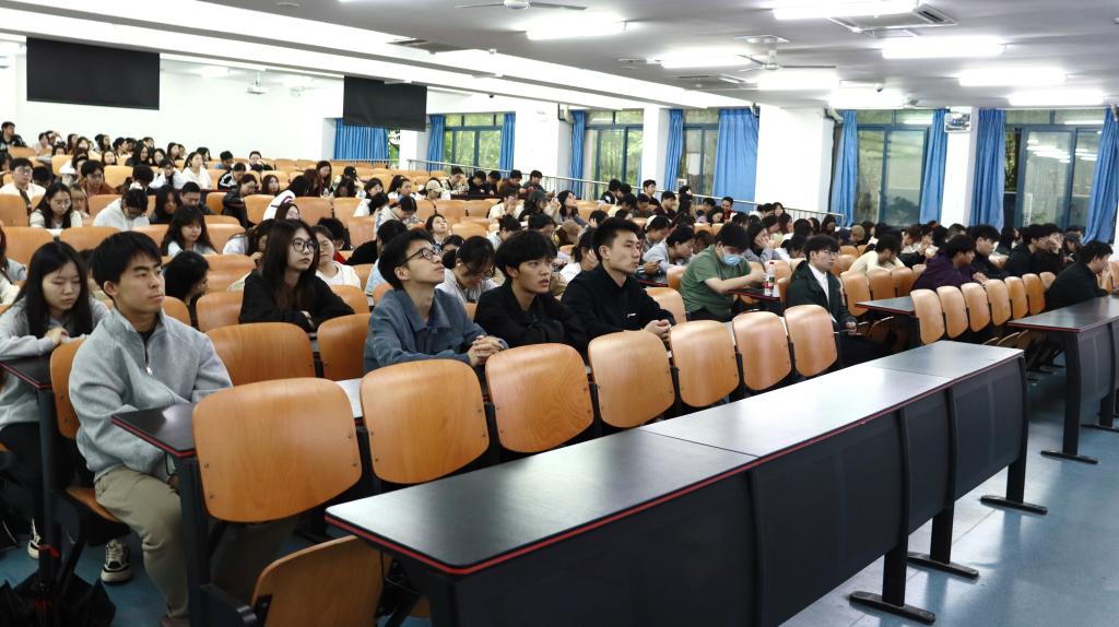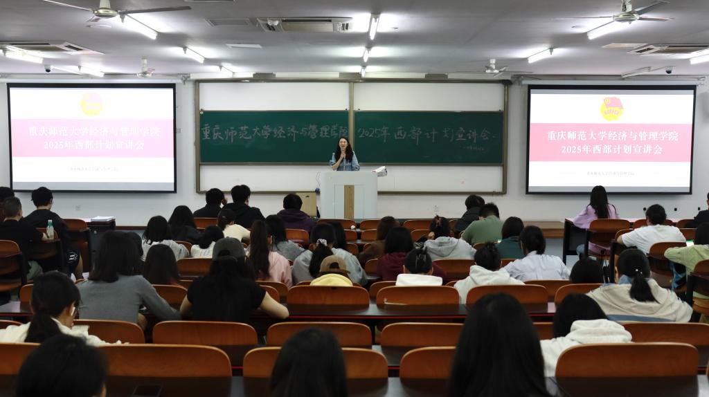 宣讲会上,张莉围绕西部计划是什么、为什么选择广西西部计划、如何报名参加西部计划等方面进行西部计划政策解读。她特别强调,国家为西部计划志愿者提供考研加分、定向招录、就业创业扶持等专项政策,鼓励同学们将个人成长融入国家发展大局。唐艺珊梳理了西部计划的报名流程与时间节点,提醒有意愿的同学在5月10日报名截止日前尽快登录西部计划官方网站报名。