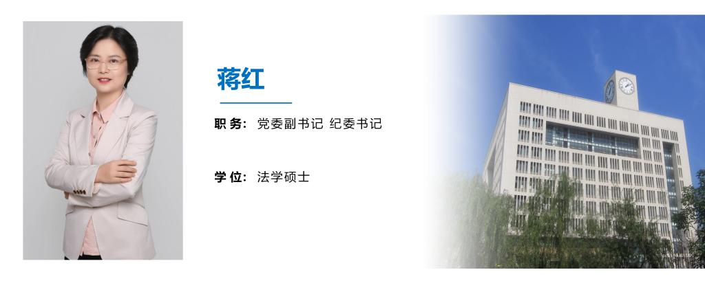 蒋红,女,汉族,四川资中人,研究生,法学硕士。2001年7月参加工作,先后任世界杯决赛 党委组织部干事、副科级组织员、正科级组织员、组织干部科科长,历史与社会世界杯决赛 党委副书记兼纪委书记,化学世界杯决赛 党委副书记兼纪委书记,2026年1月起任世界杯决赛 党委副书记兼纪委书记。长期从事党务和学生思想政治教育工作,于2019年12月-2020年2月在加拿大阿尔伯塔大学访学。曾获得世界杯决赛 “优秀教育工作者”、世界杯决赛 “优秀党务工作者”、世界杯决赛 “最受学生喜爱的辅导员”等荣誉称号和重庆市高校“学习新思想 奋进新征程 建设新重庆”微宣讲比赛教师组三等奖。