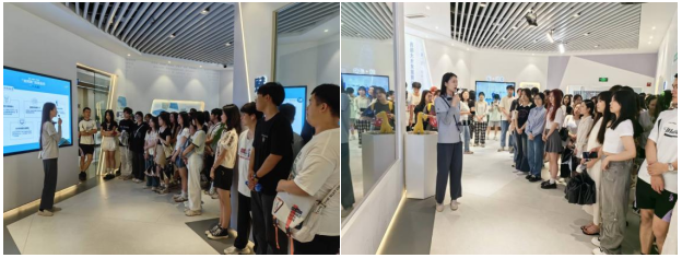 本次研习交流活动采取讲解员带领参观和学生自由参观两种方式,在园区内部讲解员专业的讲解和引导下,师生逐一参观了人力资源服务产业园区文化墙,了解学习了“金凤凰”政策的具体内涵、人才待遇、创新政策和产业政策;此外,讲解员还结合具体案例,概括性介绍了园区的规划与定位、功能与作用,细致讲解了高新区各类优惠政策,并借助展厅内部工具,向在场师生生动展示了园区在实际工作中的创新实践和显著成效,进一步加深了学生对产业园和行业运营管理的认知。在学生自由参观过程中,学生有序参观体验了其他展厅和办公环境,并就企业的岗位需求、业务流程和就业创业等方面,与园区内其他工作人员进行了热切交流与了解。