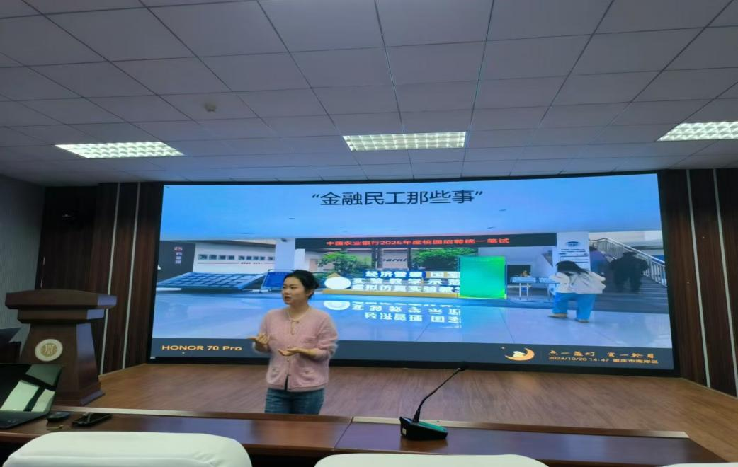 于2024年11月7日下午在求是楼517举办以“金融那些事儿”为主题的就业经验分享和交流会。会议由院长助理、金融工程系主任王珏副教授主持,2022级农业管理专业研究生卢柯屹同学做就业择业经验分享,2022级、2023级和2024级本科生参加此次活动。