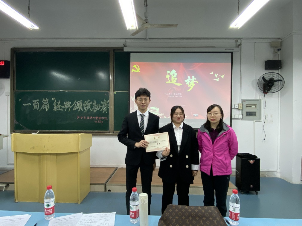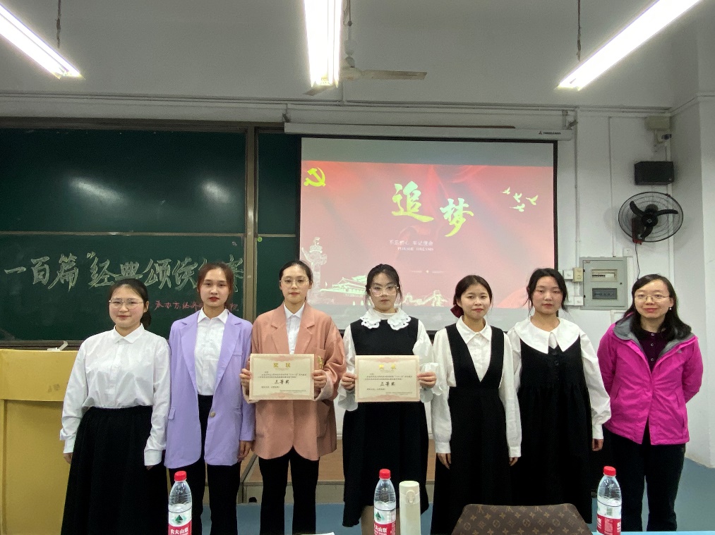 经过激烈角逐,最终 “星火队”凭着精美的PPT、激动人心的配乐以及队员们充满丰富情感的朗诵荣获一等奖,“社会主义接班人”、“青春有我”团队获二等奖,“青春颂党队”、“红心向党队”获三等奖,“四大金刚”、“九歌队”、“传颂经典队”团队获优秀奖。8个团队的优秀表现均得到了任缙老师等各位评委的一致好评,除此之外,任缙老师也希望今后的朗诵作品能突出世界杯决赛