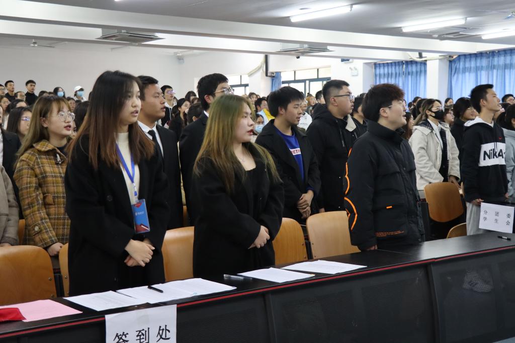 党委副书记任源钢、分团委书记张莉、21级辅导员唐艺珊出席会议,全体青马初级班成员及往届优秀学员参加仪式。