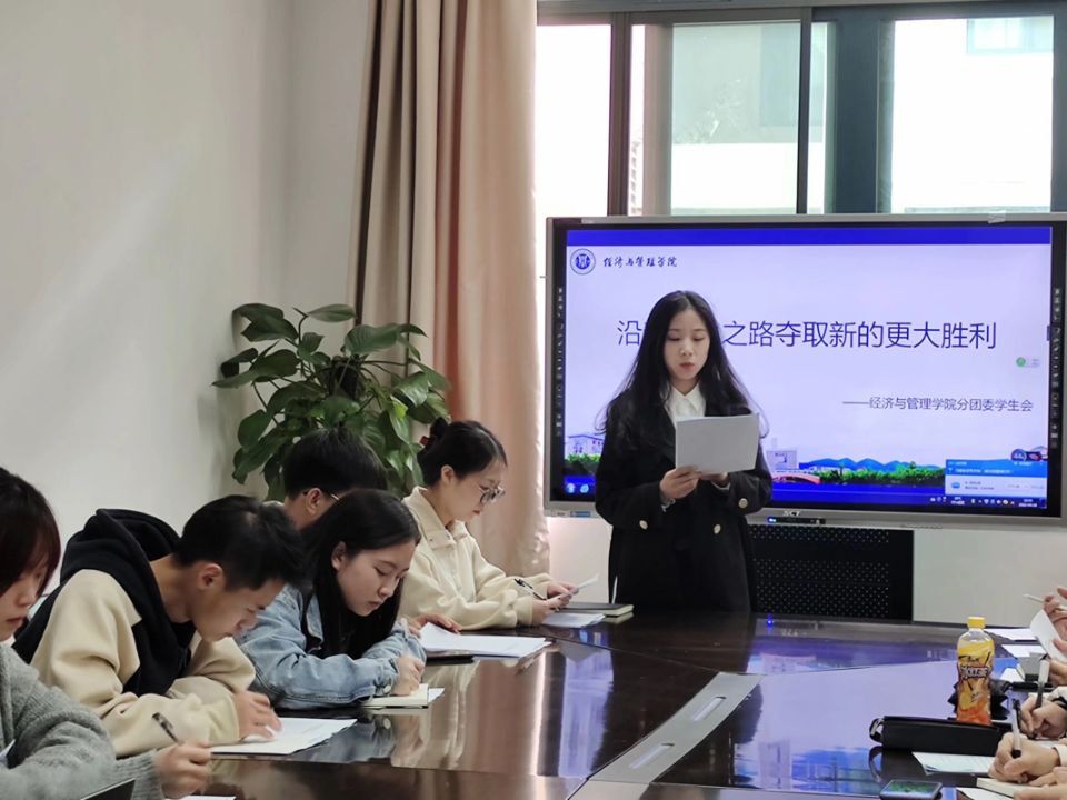 实际,对分团委进行了思想动员;最后,她提出学生干部应加强政治引领,全心全意为同学服务。会议现场,张老师悉心解读文件,抓题眼,抓关键词,同学们聚精会神,学以致用。