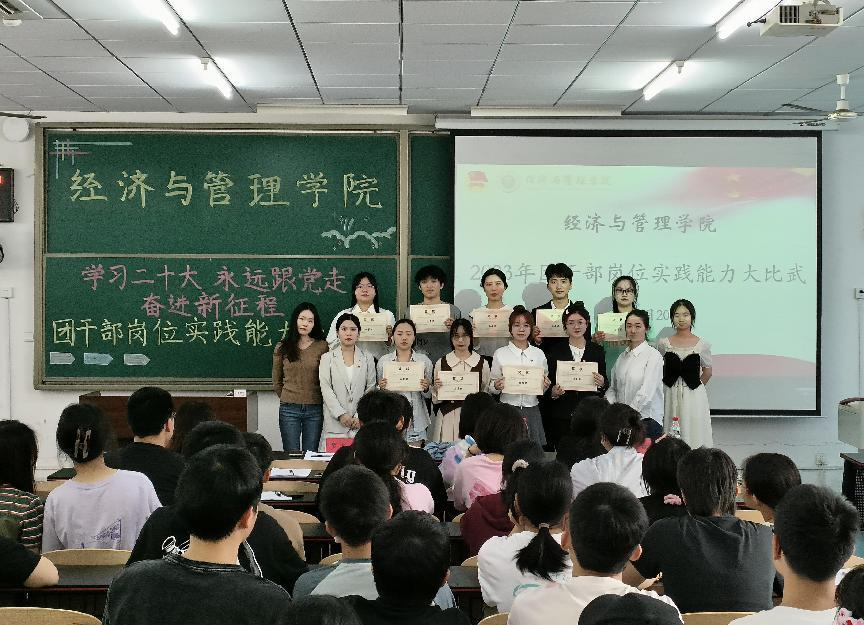 团干部岗位实践能力大比武。此次活动有幸邀请到团委书记兼学工办主任张莉老师、辅导员唐艺珊老师、学生会主席团书记罗冬蓉以及组织部主要负责人马睿楠莅担任评委。